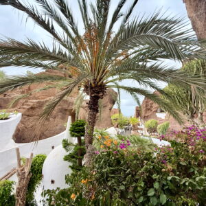 The extensive gardens cover various areas with swaying palm trees, a variety of cacti and aloe species as well as other fascinating desert plants. There are winding paths, hidden corners and vantage points on the hills that offer ever-changing views.