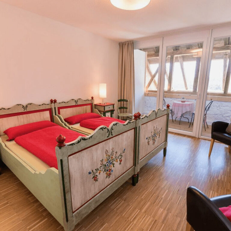 Moderne, ruhige Zimmer mit Bad und überdachtem Balkon bieten einen komfortablen Rückzugsort und eine entspannte Nachtruhe.